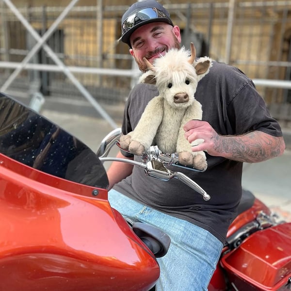 I am so proud to introduce "Hamish" a beautiful White Highland Cow. This cow is created in beautifully soft winter white alpaca, and is completely hand made taking over 45 hours to complete.
